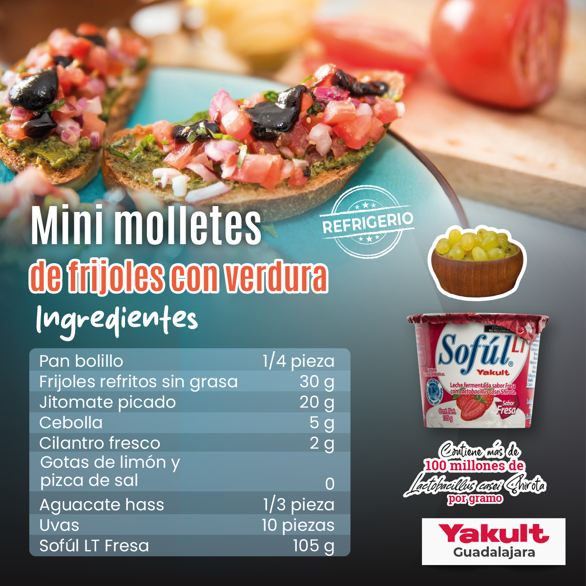 Mini molletes de frijoles con verdura