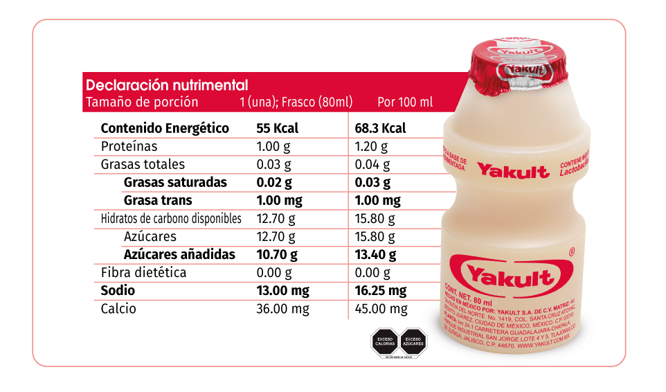 Es un producto a base de leche fermentada que contiene más de 8 mil millones (=8,000,000,000) de Lactobacillus casei Shirota que son capaces de llegar vivos a los intestinos mejorando las propiedades de la microbiota intestinal (flora intestinal).